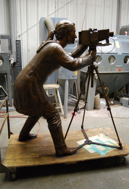 Bronze Portrait Statue Of Debra McClinton Shooting Some Pictures, Life