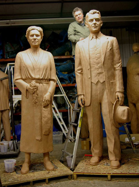 Mr. Mrs. Hunt Heroic Monument Memorial Statue Clay Sculpture